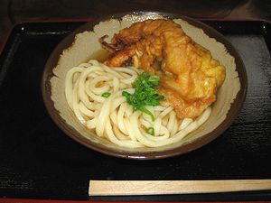 『生じょうゆうどん』にいかげその天ぷらとかぼちゃの天ぷらをのせて食べました。